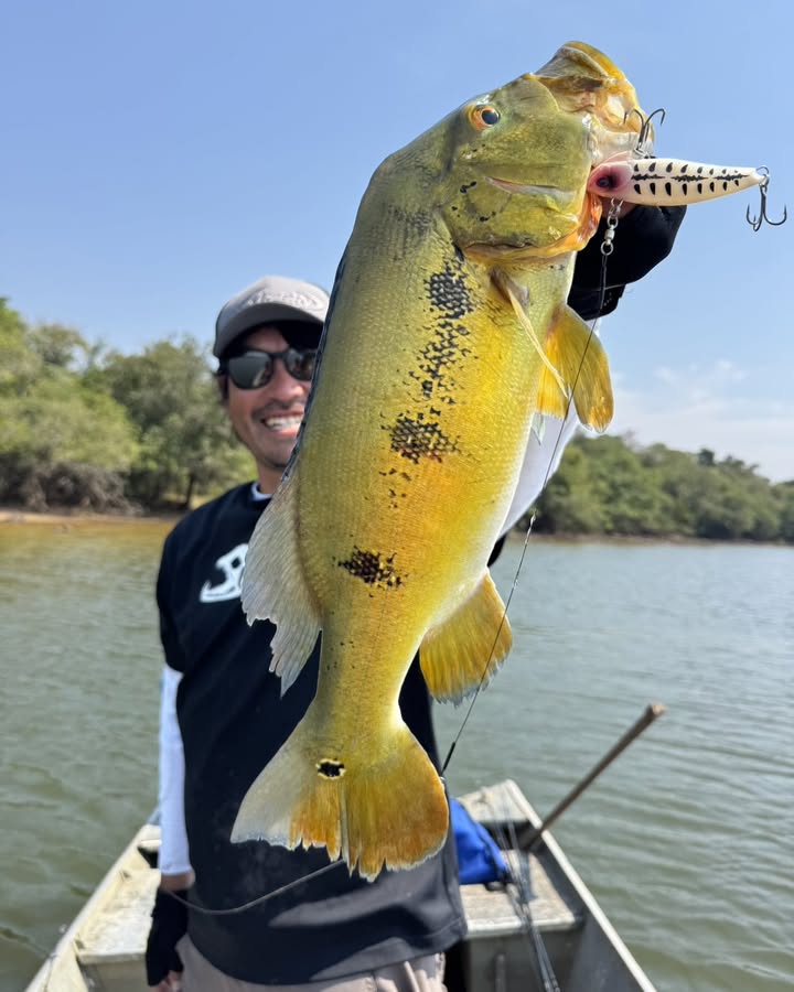 In the South American Amazon, the number one game fish is known to be the Peacock bass. Its beauty, the jump, the fight and all the other aspects associated with this fish gives it the top priority target for anglers around the world. The most productive lure for this fish would be the 120 and 140 SR series. Jerking and a combination of “stop and go” with the floating model of the SR is the most standard method. Anglers will be able to first handedly understand the concept of the Fangbait series, where it “catches plenty of fish, but doesn’t break”.